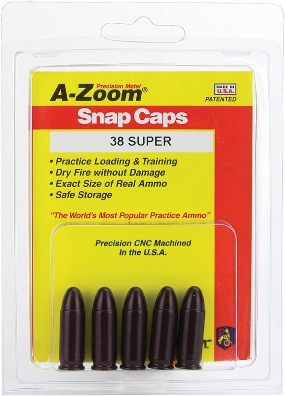 For safety training, function testing or safely decocking without damaging the firing pin, A-Zoom training rounds are much more than conventional snap-caps. They are precision CNC machined from solid aluminum to precise cartridge dimensions, then hard anodized for ultra-smooth functioning and long life.Each round has A-Zoom's remarkably durable Dead Cap proven to withstand over three thousand dry fires while protecting the firing pin. A-Zoom Snap Caps last over 30 times longer than conventional plastic examples and are available in over 120 sizes
