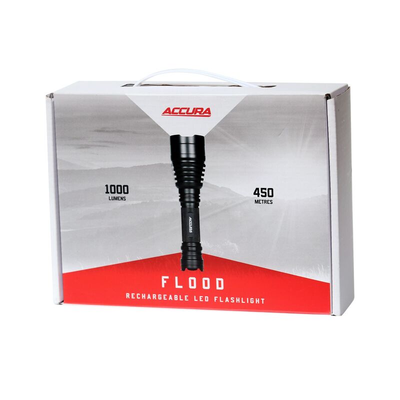 Illuminate your path and conquer the darkness with the Accura Flood ACFL1000 LED Torch. This high-performance flashlight is an essential companion for any outdoor adventure, from hunting and camping to general exploration. Delivering a powerful 1000 lumens, it cuts through the night to reveal every detail, boasting an impressive beam range of up to 450 metres. Built to withstand the toughest environments, the Accura Flood torch features a rugged construction with an IP68 waterproof rating, ensuring it remains fully operational even after being submerged or caught in heavy rain. The complete kit includes a rechargeable 3000mAh battery that provides a generous 110-minute runtime, along with a convenient USB charging cradle, cable, and power adapter, so you're always ready for action. The 5000K warm colour temperature provides a clear, natural-looking light that is easy on the eyes. Whether you need a concentrated spotlight or a wide flood beam, this versatile torch has you covered. Secure your essential illumination tool today and light up your next adventure with Xhunter Australia.