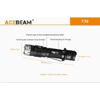 The AceBeam T36 is a dual switch tactical LED flashlight It features 5 brightness levels plus a strobe mode and is powered by a single rechargeable 21700 Li-ion 5100mAh battery (included) and is also compatible with 18650 batteries with the included battery adaptor. The T36 delivers an output range of 15 lumens to 2100 lumens with a beam distance of up to 309 metres. The built-in USB-C charger makes charging convenient and up to 3 times faster than normal USB charging. This is a great quality torch for security, law enforcement, hiking, camping and more. USB-C rechargeable hunting & tactical torch!