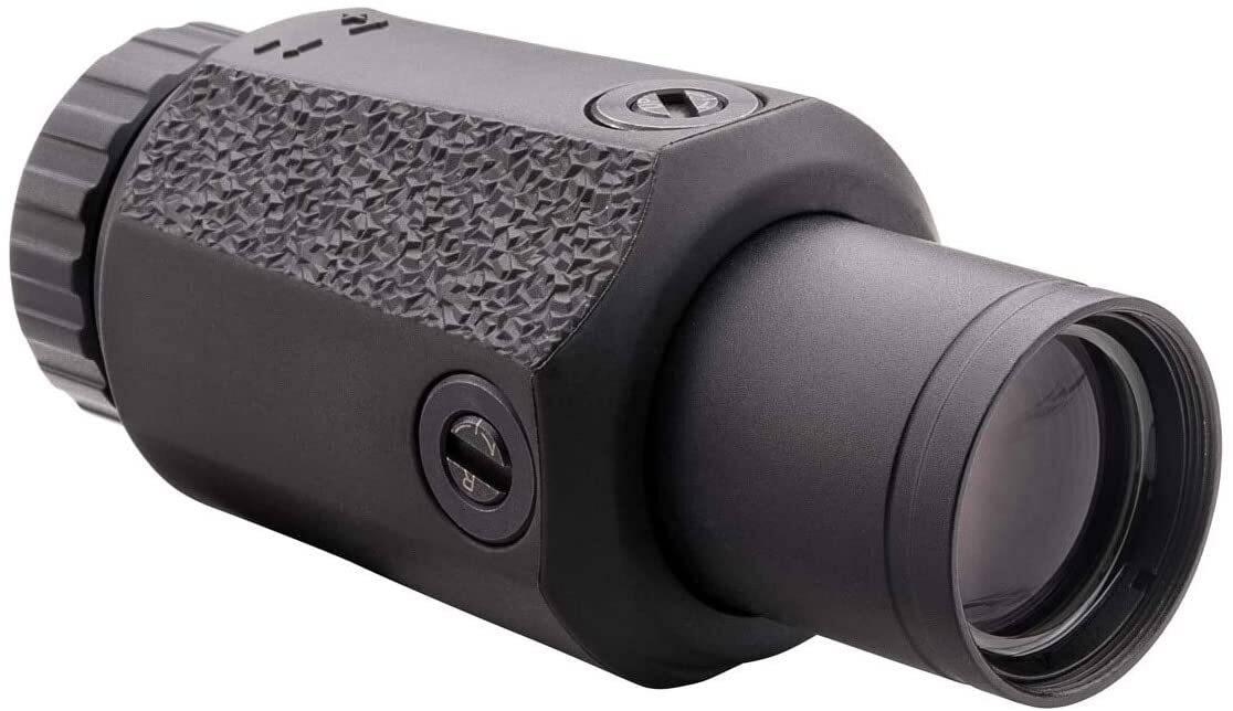 Use the Aimpoint 3X-C Red Dot Magnifier to increase the magnification level of any Aimpoint optic to expand your ranging capabilities or use it as an observation tool. Each of these Red Dot Sight Magnifiers made by Aimpoint features a variable dioptric setting (-2 to +2) that lets you adapt the magnifier to your individual eyes for customized clarity. Even if you don't want to mount this accessory, the Aimpoint 3X-C Optic Magnifier can be used as a handheld monocular for quick sighting downrange. Since the 3X-C utilizes the red dot in each sight as the aiming reticle, you never have to re-zero when switching between regular and magnified use. The shock-absorbent rubber housing acts as a grip for the device while protecting the internals from the severe recoil of your weapon. Enhance the capabilities of your current optic by adding this Aimpoint 3X-C 3x RDS Magnifier to the equation.