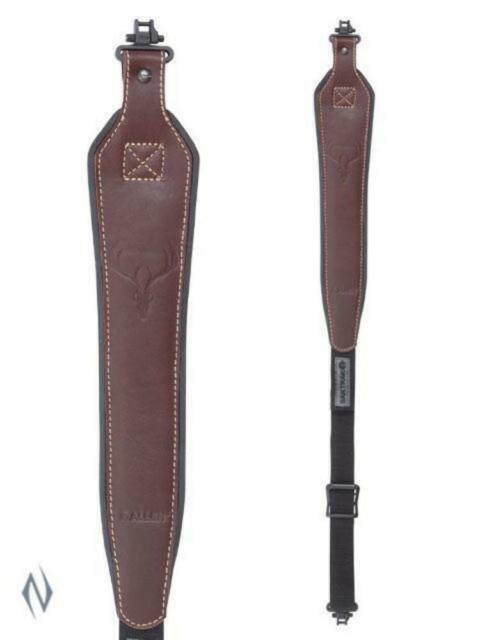 The BakTrak leather sling by Allen features the BakTrak pad, a soft molded back for extreme grip that also reduces sling related noise. One hand, quick adjusting, this full grain leather faced sling has swivels tested to 300 pounds.
