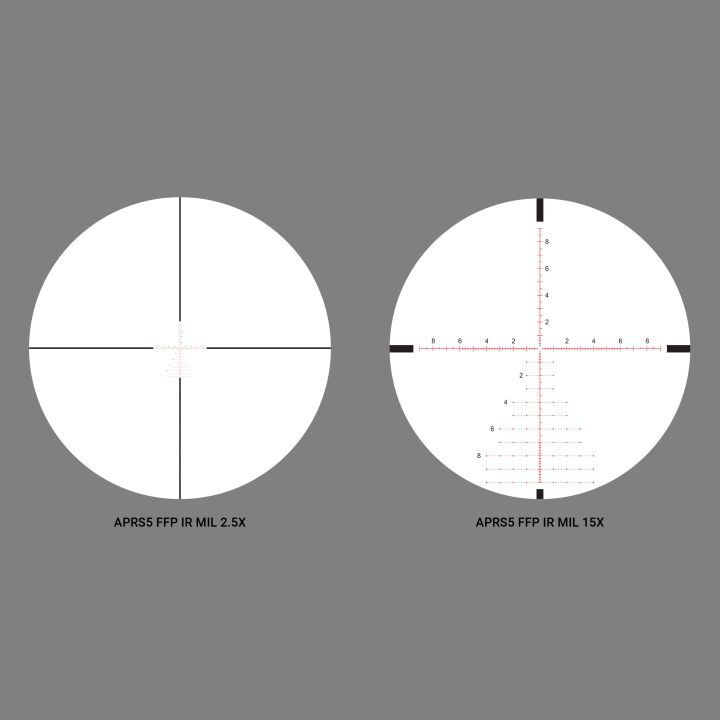 • Reticle: APRS5 FFP IR MIL, Etched Glass