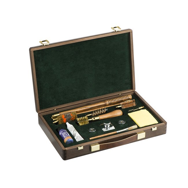 - Wooden case cleaning kit for shotgun with Beretta logo laser engraved.