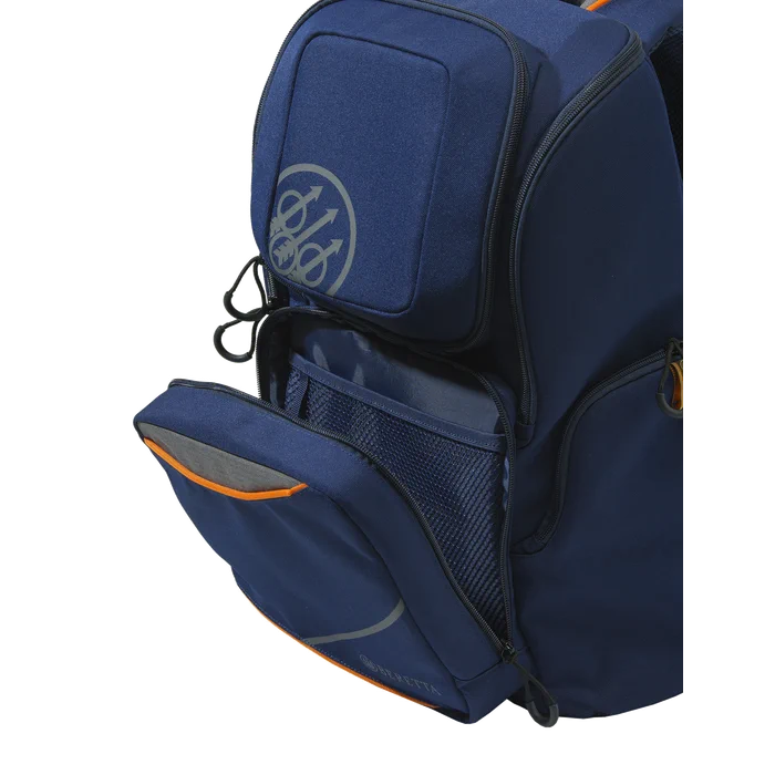 The Beretta Uniform Pro EVO Daily Backpack in Blue is a versatile and durable backpack designed with shooters in mind. With a 20L capacity, this backpack is made from waterproof and scratch-resistant 500x300 denier polyester, ensuring durability in various conditions. It features a padded back and adjustable shoulder straps for comfort during extended use. The bag is equipped with multiple purpose-driven pockets, including a specialized upper front compartment for safely storing shooting glasses and a large front pocket with a YKK zip for additional storage. Side pockets and internal organization add to its practicality, making it an ideal choice for target shooters or everyday use.