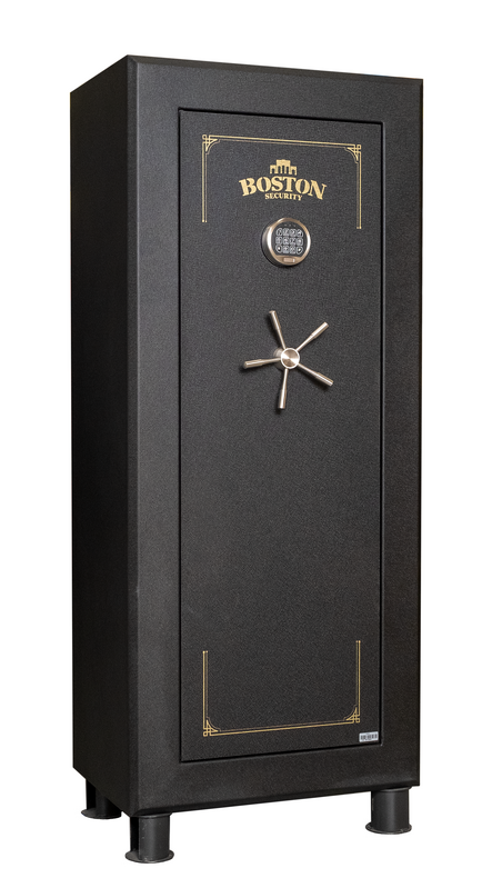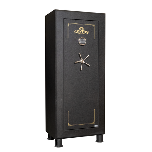 The Boston Security Premium Safe is one of the latest innovations in the world of gun safes. Securely storing up to 18 firearms it features noticeably thicker walls and door, bringing the weight to a solid 150kg when empty. The internal storage compartment is lockable and is category H certified to accommodate storage of handguns. Additionally, this Premium Safe is coated with a gloss finish for a stylish look.