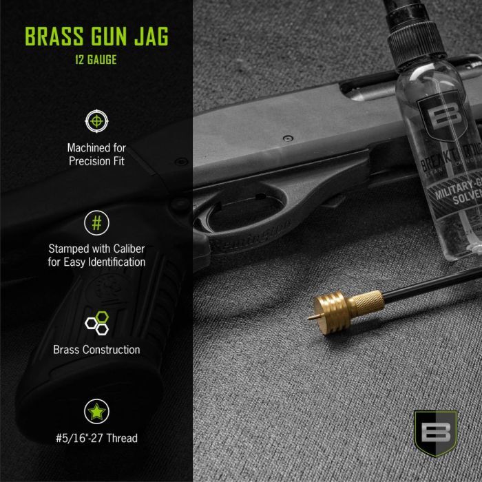 • GUN CLEANING TOOL: This 12--gauge jag is fabricated from brass, is machined for precision fit & is stamped with the specific caliber. Thread size is #5-16-inch-27 & is designed to be used with any cleaning rods.