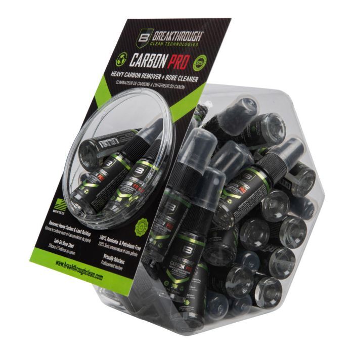 Our Breakthrough Clean Technologies® Carbon Pro—Heavy Carbon Remover and Bore Cleaner—is a water-based, ammonia-free, cleaner that removes heavy carbon and lead deposits. Utilizing a proprietary blend of chemical surfactants and detergents, Carbon Pro effectively works to neutralize all corrosive residues preventing damaging rust and corrosion without etching or harming the barrel’s steel surface. With no noxious fumes or hazardous chemicals, Carbo Pro is a safe and effective choice when it comes to removing stubborn carbon & lead build-up and cleaning the bore of your firearm.