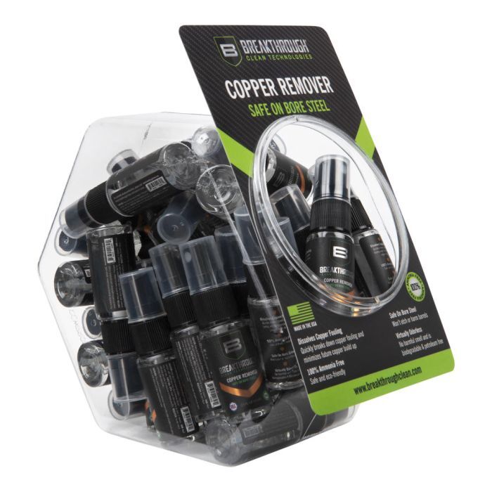 Our Breakthrough Clean Technologies® Copper Remover safely and effectively removes copper fouling and is 100% petroleum and ammonia-free. Its virtually odorless and biodegradable formula easily removes copper fouling and minimizes future copper build-up without giving off any harmful or strong offensive odors found in other copper removers. Usable on all types of bore steel and won’t etch or harm the barrel.