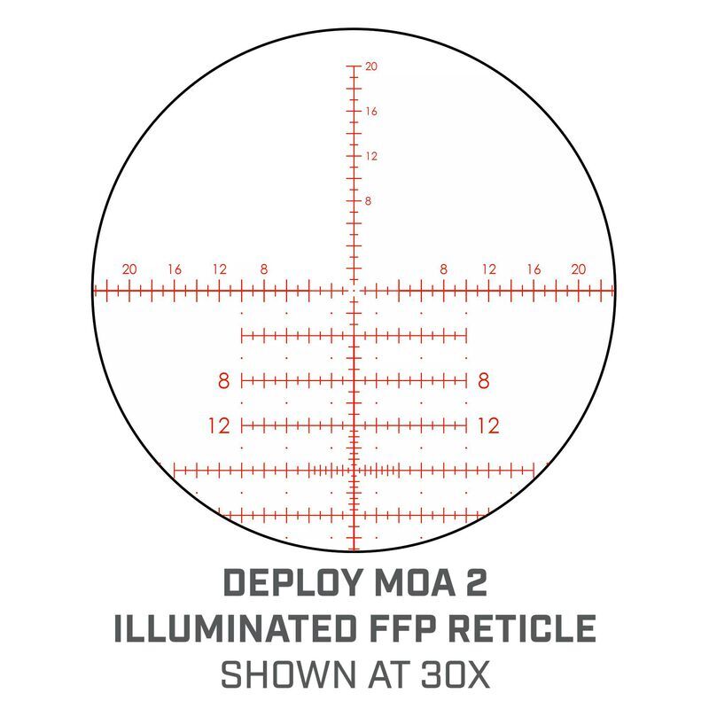 The illuminated Deploy MOA 2 reticle ensures precision targeting available across 11 brightness settings, while the Easy-Set Zero Stop guarantees fast and reliable return to zero. The 100 MOA elevation adjustment and 50 MOA windage adjustment provide the flexibility needed for long-range targeting, perfect for Australia's diverse hunting environments. Engineered with a 34mm maintube and IPX7 waterproofing, this riflescope is built to withstand the harshest elements.