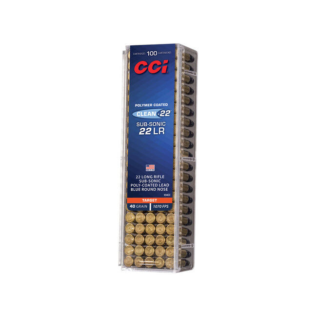 Experience a cleaner, more accurate shooting session with CCI's Clean-22 Subsonic .22LR ammunition. This innovative ammo features an exclusive blue polymer bullet coating that significantly reduces lead and copper fouling in your barrel without leaving any residue. It's engineered to cut lead buildup in suppressors by 60 to 80 percent, making it an exceptional choice for suppressed firearms. The 40-grain lead round nose bullet has geometry optimized for accuracy, while the dependable CCI priming and consistent propellant ensure flawless cycling in all .22 LR firearms, including semi-automatics. At a subsonic velocity of 1070 fps, it's perfect for quiet target practice, competitive shooting, and plinking. Keep your .22LR running clean and accurate. Stock up on CCI Clean-22 ammunition at Xhunter Australia for your next range day.