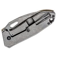 In-flight, the heron is sleek, efficient, and all business and that’s just what designer Lucas Burnley set out to mimic with the Heron. He achieved just that with a stonewashed Wharncliffe blade complete with a fine tip and jimping. The two-tone handle is crafted of strong, grippy G10 inlaid with carbon fiber details for an artistic effect that looks like the rising sun. The prominent thumb hole swings the blade open and a frame lock secures it into place for confidence slicing, cutting, and scraping.
