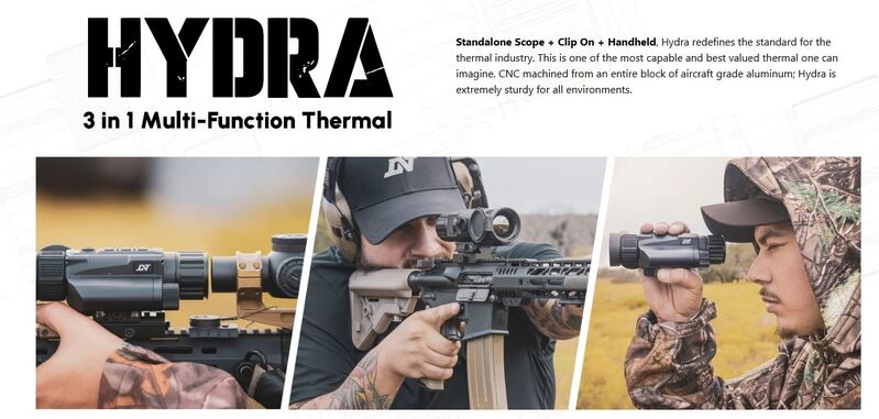 The DNT Hydra HS635 is the ultimate hunting gear for Australian outdoor enthusiasts and tactical professionals. This 3-in-1 thermal imaging device excels as a rifle scope, clip-on optic, and handheld monocular, offering unmatched versatility for various shooting scenarios. Its high-resolution thermal sensor (640×512, 12μm) ensures ultra-clear images even in the most challenging conditions, making it indispensable for hunting and shooting in Australia's diverse landscapes.