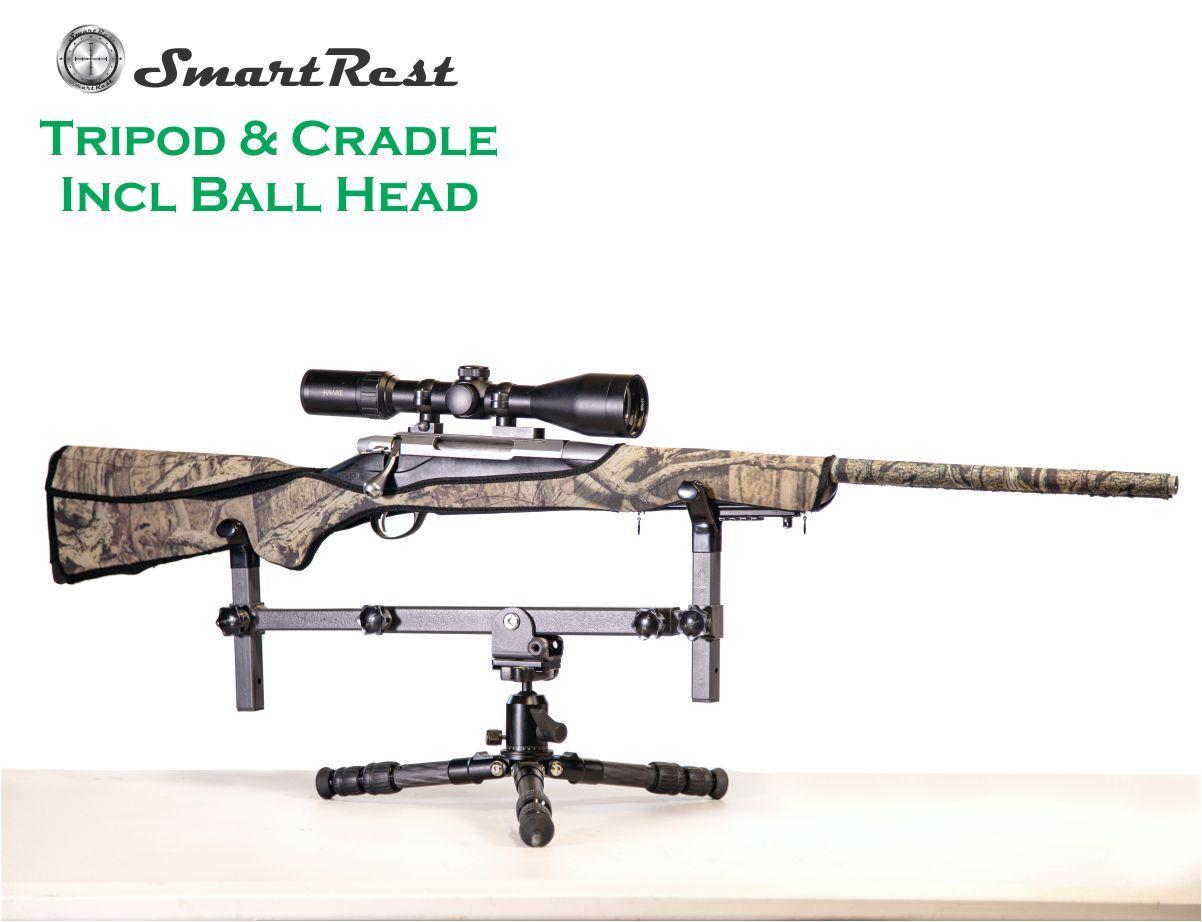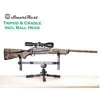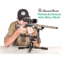 SmartRest Tripod and Cradle SRT02 is a bench rest and field rest combined. Utilizing light weight design and rock solid support this rest can be used anywhere. The Tripod and cradle can be used in prone, sitting and kneeling positions.
