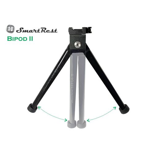 The SmartRest - Bipod II fits on the Hyper Pod units via quick release clamp. It is extremely tough, light and easy to use. It does not feature any spring loaded parts, or any locks or noisy clicking mechanisms. It is completely silent.