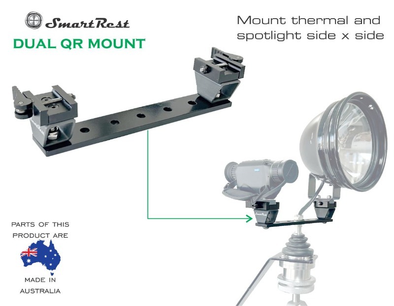 This flat bar is comes mounted with 2 x Quick Release rail clamps. You can mount dual thermals as well as dual spotlights or one of each.