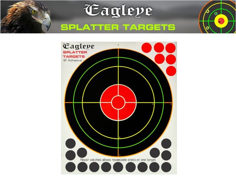 These Targets have a brightly coloured “splatter” halo that appears around the hole your round makes in the target. This makes it easy to see exactly where you are hitting, rather than having to walk downrange or get out the spotting scope.