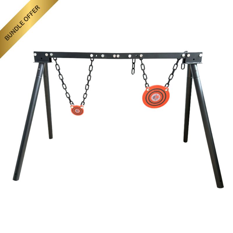 The set includes both a 4-inch and an 8-inch gong, allowing shooters to practice precision shots and adjust their challenge level. The included heavy-duty shooting frame and hanging chains make setup quick and secure.