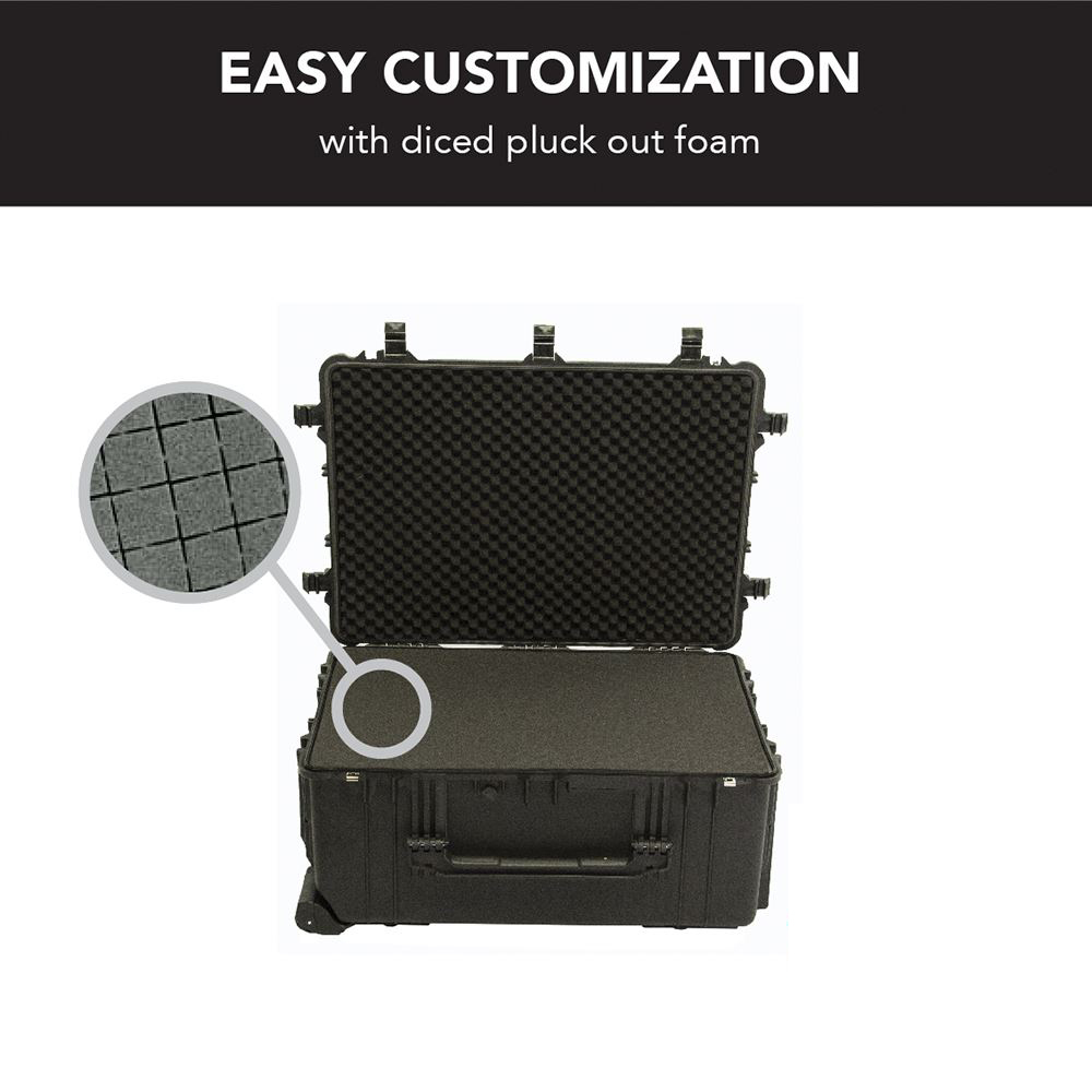 - Shock resistant with multi foam layer system, including a layer of diced Pluck Out foam for full customization and improved protection and shock Resistance,