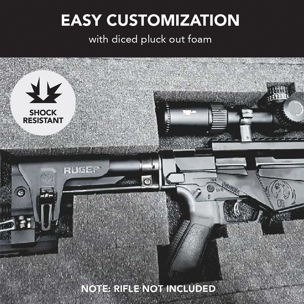 The HD Series Rifle Hard Case is constructed from Polypropelene (PP) engineered plastic. PP is specifically chosen for its machining and fabrication qualities and also for its structural applications when lightweight, impact resistance, strength, and stiffness are required. These tough cases are ideally used for hunting and tactical applications and are also waterproof, dust-proof, shock resistant and able to withstand harsh environments.