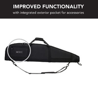 Ensure the safe and secure transport of your firearm with the Evolution Gear 48" Rifle Soft Case. Engineered for superior protection and functionality, this case is constructed from a rugged 1680D Polyester external shell, providing exceptional resistance against snags, rips, and tears. The interior features thick 15mm EPE padding and a soft 180g fleece lining to protect your rifle from knocks, drops, and scratches during transit. Key design elements include a padded tip for extra muzzle protection, premium quality zippers for reliable access, and an integrated exterior pocket for ammunition and accessories. For comfortable handling, the case is equipped with a padded shoulder strap, making it ideal for carrying to the range or out in the field. This soft case is designed to accommodate rifles with scopes up to 1200mm in length. Secure your firearm for transport with the durable and reliable Evolution Gear SCR_48 Rifle Case from Xhunter Australia.