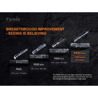 The Fenix PD35 V3.0 is a versatile tactical torch with a powerful output of 1,700 lumens with a 357m beam distance. The PD35 3.0 utilises a Luminus SFT40 LED and offers 5 brightness levels and a strobe mode for a variety of situations. This torch runs off an 18650 Li-ion battery which is directly rechargeable with a Micro USB charging cable. The tactical tail switch allows you to easily turn the torch on and the side switch allows you to cycle through the six output modes. The PD35 V3.0 is made of durable A6061-T6 aluminium, is 1m impact resistant and has an IP68 dust-proof and waterproof rating. This compact yet high output torch is ideal for security, tactical situations, camping and any outdoor or work activity.