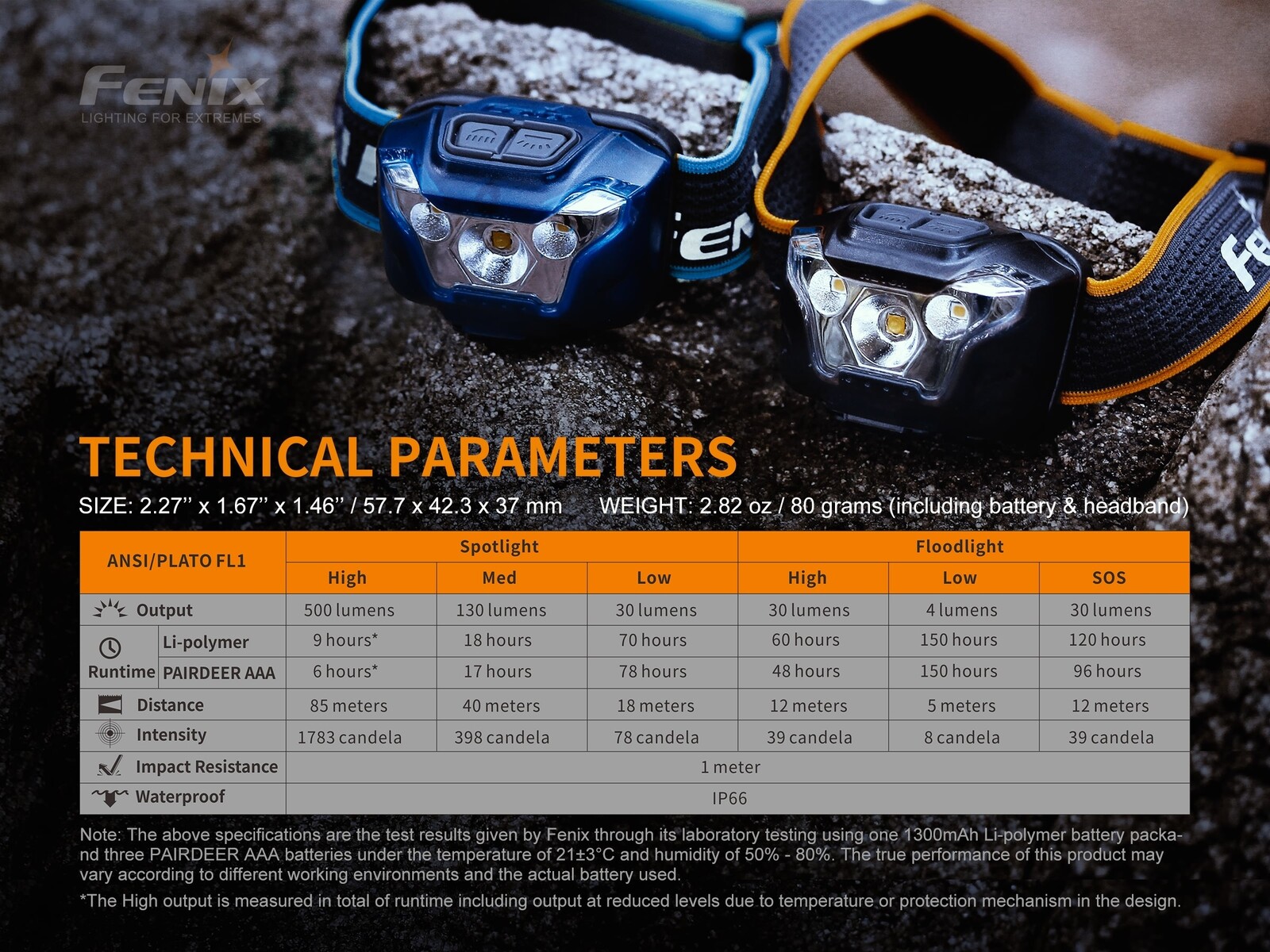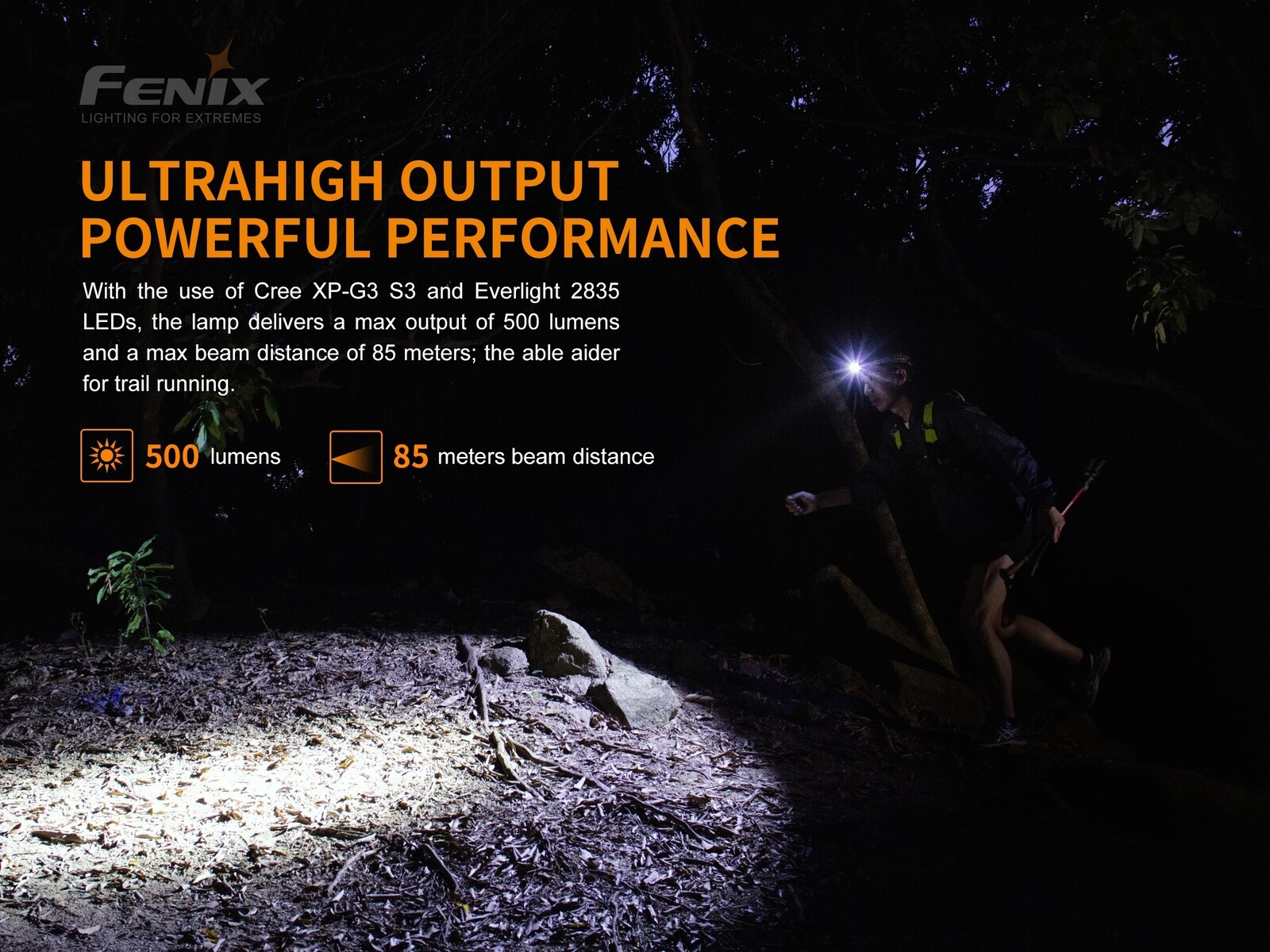 Fenix Rechargeable 500 Lumen Flood Spot Led Headlamp - Black Waterproof #hl18rw