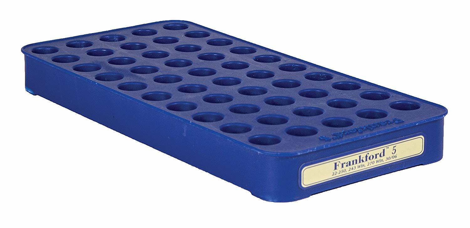 Frankford Arsenal Perfect-Fit Trays are sized for individual calibers or a family of calibers for a precise fit. Perfect-Fit trays are an essential tool for reloading efficiency and organization. Twelve tray sizes are available for 25 ACP through 500 Nitro. Each tray holds 50 cases (tray #9 holds 45). A lip around the outside edge provides a sure grip on the tray.