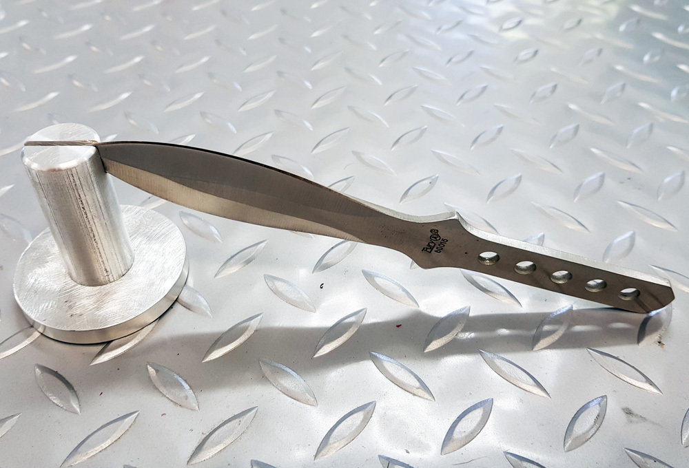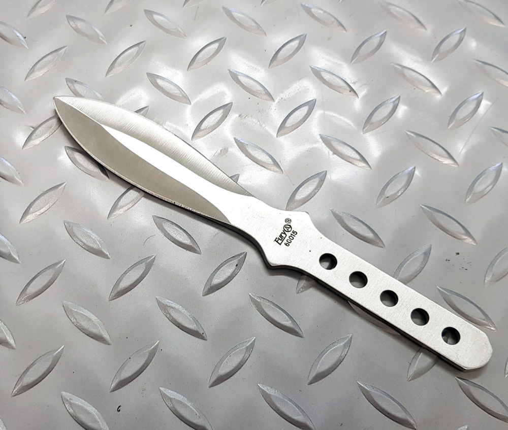 Fury Double Edged Hell Thrower throwing knife with a 5 hole handle for a more balanced and consistent throw.