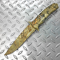Fury Camouflage Fixed Blade Hunting Knife with Woodland Style Print on Length of Blade for Maximum Discretion.