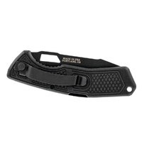 A 420HC black ceramic coated blade, rubberized diamond texture handle, sturdy pocket clip, and partially serrated blade ensure preparedness.