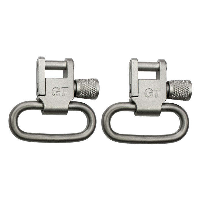 Ensure your rifle sling stays securely attached with the Grovtec GTSW03 Locking Swivels. Renowned for their superior machining tolerances and premium finish, these swivels are crafted from all-steel for maximum durability and reliability in the field. The design features an ergonomic free-spin sleeve for an added layer of security, preventing accidental release. This set includes a pair of 1-inch loop swivels with a satin nickel plated finish, designed to fit any standard swivel stud on your rifle or shotgun. Proudly made in the USA, Grovtec swivels offer a snug, solid fit with minimal noise. Secure your firearm with confidence—upgrade your sling attachment system with these high-quality locking swivels from Xhunter Australia.