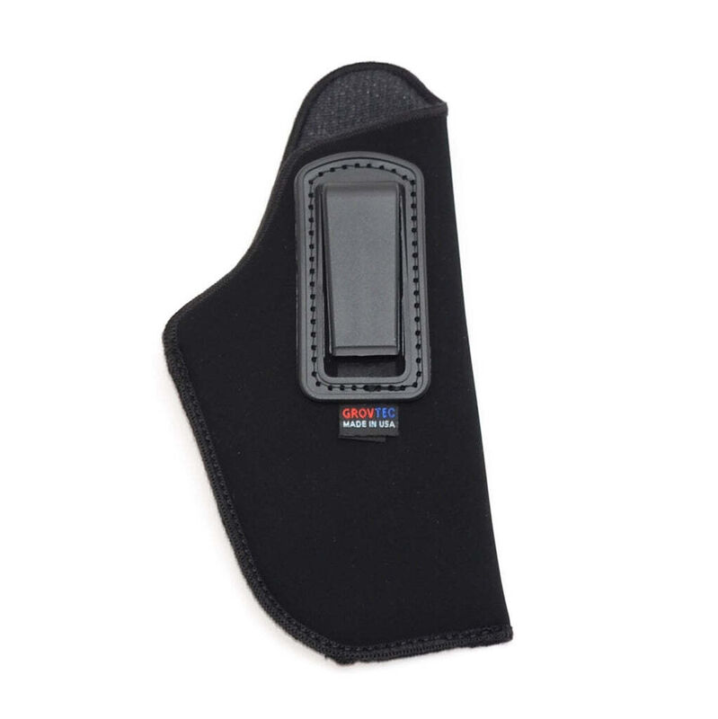 Experience superior comfort and concealment with the Grovtec GTHL14115R Inside-the-Pant Holster, proudly made in the USA. Designed for right-handed users, this holster fits most large semiautomatic handguns with 3" to 4" barrels. Crafted from a tough, multi-layered material called Lammy Suede, this holster is waterproof, lightweight, and form-fitting for exceptional durability and a low profile. The innovative design features an internal moisture barrier to protect your firearm from perspiration, while the soft nylon lining ensures a smooth, fast draw when you need it most. The suede-like outer layer grips your clothing to prevent movement, and the sturdy belt clip slips securely over your pants and belt for a stable, reliable carry. Secure your firearm with confidence. Choose the Grovtec IWB holster for a discreet, comfortable, and reliable everyday carry solution.
