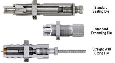 - Included Dies: Straight wall sizing die, standard expanding die, standard bullet seating die