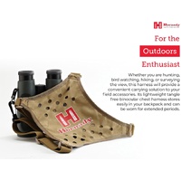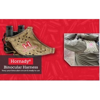 The 99121 Binocular Harness is a practical upgrade for anyone who spends long hours in the field. Designed to replace the traditional neck strap, it provides a more comfortable and secure way to carry binoculars during hunting, shooting, or outdoor adventures across Australia. By distributing the weight evenly across the shoulders and back, it effectively reduces neck strain, making it ideal for extended use. The 99121 harness features a durable system of four elastic straps connected to a form-fitting X-panel on the back, ensuring the binoculars stay close to the chest and stable in motion. Whether walking through dense bushland, tracking game, or adjusting a rifle scope, this hands-free design prevents unwanted swinging or bouncing. When it’s time to use your optics, the elastic straps allow for quick and smooth access, lifting the binoculars effortlessly to your eyes. Built for convenience, the harness is easy to put on and remove, maintaining a secure fit throughout the day. Finished in a tactical Tan colour and branded with the Hornady logo on the rear X-panel, it pairs perfectly with other outdoor equipment and tactical accessories. Available through Xhunter Australia, the 99121 Binocular Harness is a reliable piece of hunting gear designed for comfort, stability, and performance in the toughest outdoor conditions.