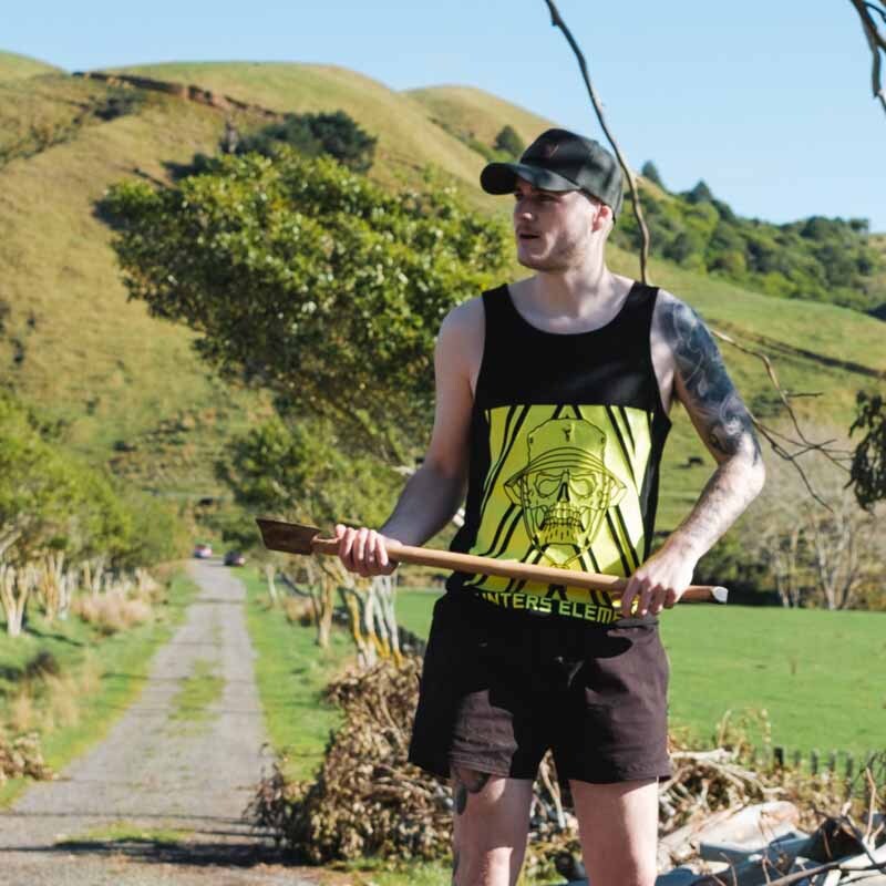 Stay safe and be seen. The Boonie Vis Singlet is a summer top designed to beat the heat on the worksite. Featuring a custom fluoro yellow print on the front and back of the singlet.