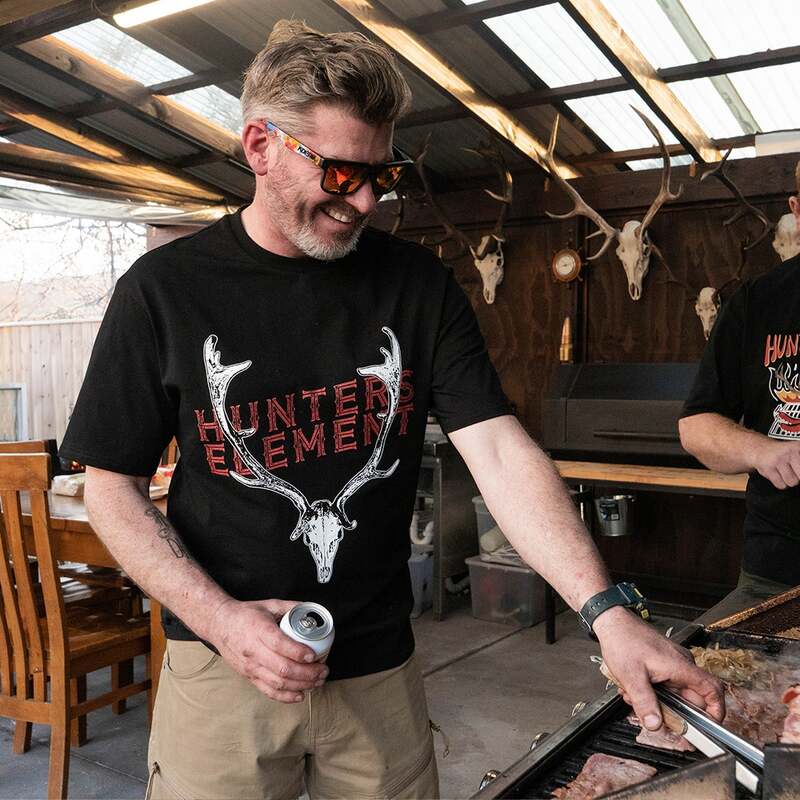 Step into BBQ season with style in the Fallow Skull Tee, part of the limited edition everyday range by Hunters Element. Crafted from premium materials, this crew-neck tee offers both comfort and durability, making it perfect for everyday wear. Showcasing an impressive fallow skull graphic on the back and the Hunters Element logo on the front, this tee allows you to proudly display your passion for hunting.