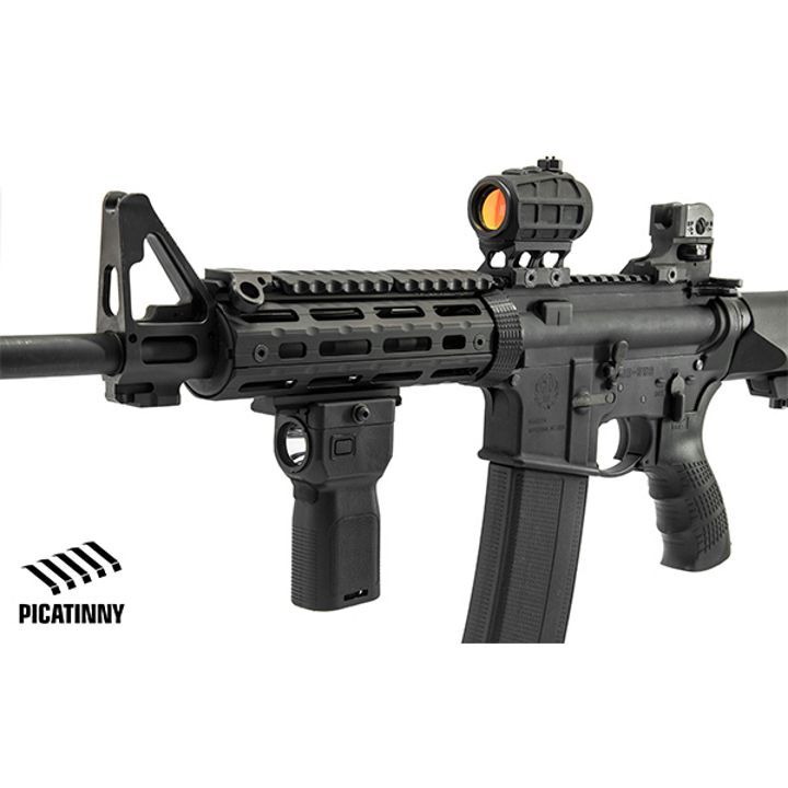 Enhance your tactical efficiency and gain a critical advantage in low-light conditions with the Leapers UTG EL223GX Polymer Grip Light. This integrated foregrip and weapon light provides superior control and stability for your rifle, while illuminating your surroundings with a powerful 400-lumen beam. Engineered from impact-resistant polymer, the UTG EL223GX is built for durability and can withstand the rigors of demanding use. Its IPX7 waterproof rating ensures reliable operation even when submerged in up to one meter of water for 30 minutes. The light features fully ambidextrous controls for momentary or constant-on activation, as well as a strobe function. For added versatility, the constant-on beam is scalable from a powerful 400 lumens down to 20 lumens, with a runtime of up to 3 hours on the highest setting. The unit mounts securely to any standard Picatinny rail with a squared recoil stop for a dependable, zero-wobble fit. Secure your target and operate with confidence in any environment. Upgrade your rifle with the all-in-one control and illumination of the Leapers UTG Grip Light from Xhunter Australia.