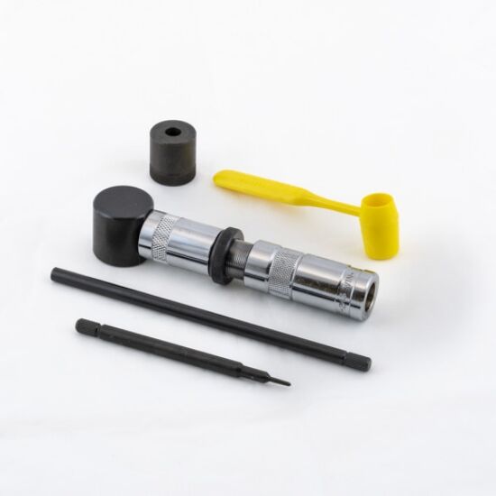 Kit Includes: Sizing die, decapping chamber, bullet seater and priming chamber, decapper, priming rod, powder measure, load data, plastic storage case.