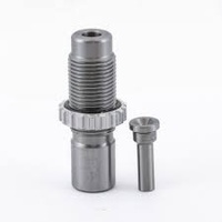 The fastest and easiest way to lubricate and size cast bullets. Standard 7/8 x 14 threads fit any reloading press. Bullets are pushed through the sizing die nose first, so no special nose punches are needed. Gas checks are automatically seated and crimped in place. Sized bullets are captured in the special container.