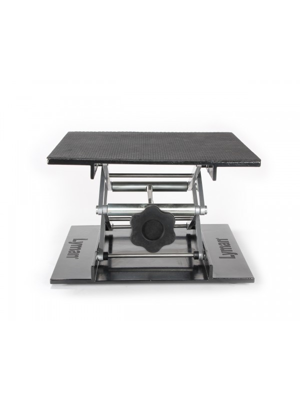 The lift is made from sturdy aluminium and steel components and has a non-slip textured platform. The lift is 10" x 10" so it can accommodate the largest size rests, and collapses for unmatched portability.