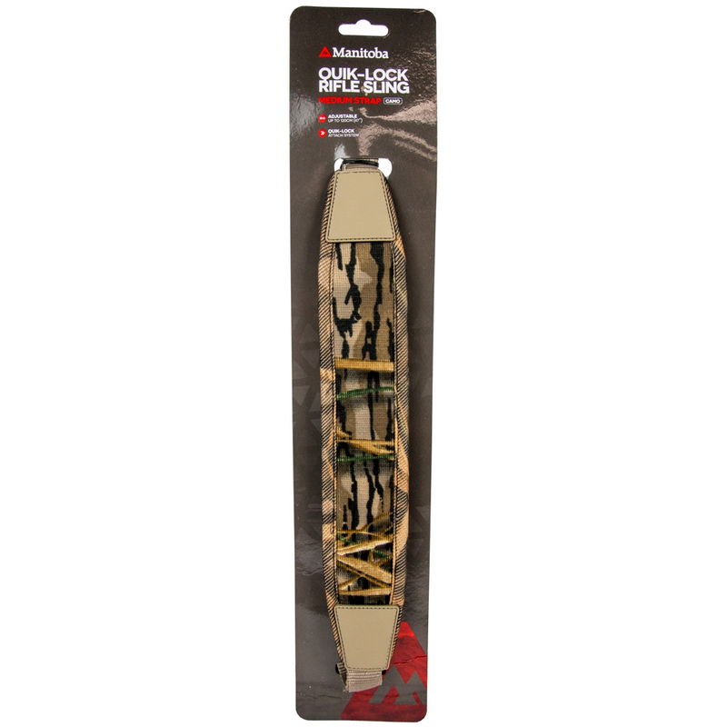 Engineered for durability and comfort, the Manitoba Quik-Lock Rifle Sling ensures your firearm is always secure and ready. This sling is crafted from rugged neoprene with heavy-duty webbing and reinforced stitching, built to withstand the toughest outdoor conditions. The standout feature is its quick-release metal swivel mounts, allowing for silent and hassle-free interchange between different firearms. For all-day comfort during long treks, the sling incorporates a 10mm padded, non-slip shoulder pad that stays put. Adjustable up to 120cm, it provides a custom fit for any hunter. The camouflage pattern ensures you remain concealed in the field. Secure your rifle for your next hunt with the reliable Manitoba Quik-Lock Sling from Xhunter Australia.