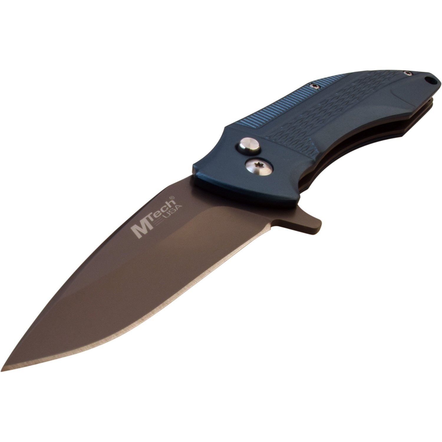 Mtech Drop Point Fine Edge Blade Folding Knife - Ball Bearing Pivot 7.5 Inches Blue #mt-1034bl