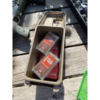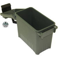 The Mtm Case-gard AC15P Mini Ammo Can is a compact and durable solution for storing bulk ammunition and other gear. Constructed from rugged polypropylene plastic, this lightweight ammo can is designed for years of service. Despite its 'mini' size, it offers substantial capacity, holding up to 700 rounds of 9mm or 400 rounds of .223 bulk ammo. A key feature is the water-resistant O-ring seal, which utilizes a tongue and groove system to protect contents from moisture, making it ideal for storing ammunition, medical supplies, or tools. For security, the can is equipped with a heavy-duty latching system and double padlock tabs. The design also incorporates molded-in stacking ridges for stable, slip-resistant stacking, helping you keep your storage space organized. With a comfortable handle and a 12-pound carry capacity, it's perfect for transport to the range or field. Keep your bulk ammunition safe, dry, and organized with Xhunter Australia's selection of MTM storage solutions.