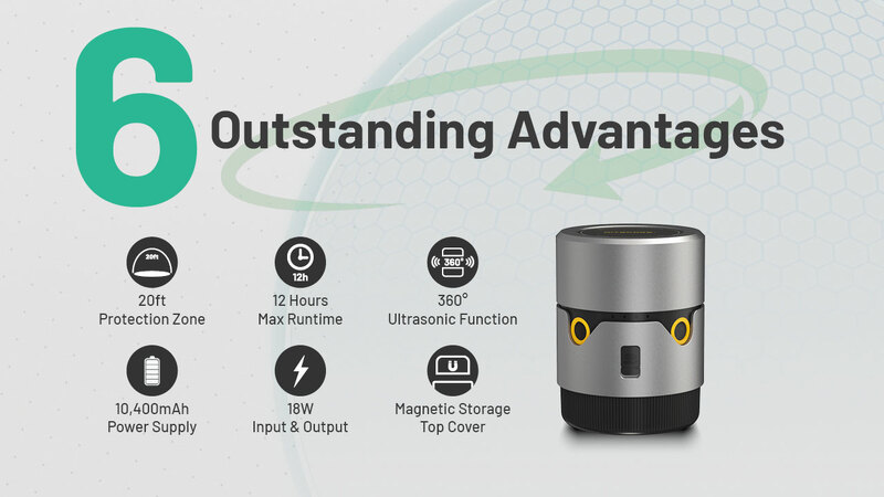 The standing EMR30 is a simple but modern design that takes little space but provides big benefits. The EMR30 is both safe and reliable. It comes with a simple two button interface for repellent and ultrasonic. It is rated IPX5 water resistance with a magnetic snap-on cover on the top that protects the EMR30 but can also be used to store charging cable. Made from durable molded polycarbonate, EMR30 is durable and ready for outdoor uses.