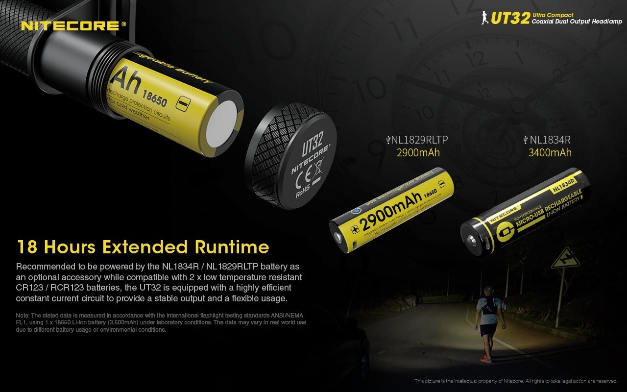 The Nitecore UT32 is new ultra-compact coaxial dual output LED headlamp. It is equipped with dual CREE XP-L2 V6 primary cool white and auxiliary warm white LED. With the combination of TrueVison technology, it has better smooth flood beam. Powered by single 18650 Li-ion battery or two CR123A batteries. UT32 is lightweight and has multiple brightness levels with the easy dual-switch user interface. The first coaxial dual output headlamp in the industry, perfect for running, camping and outdoor activities. Compact Lightweight Dual Output LED Headlamp!