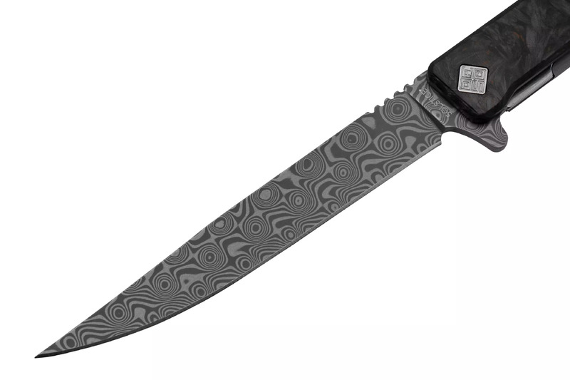 We’ve taken our premier gentleman's knife, the Solstice™, to the next level, outfitting it with a frame lock, premium 120-layer German Damascus steel, and Fat Carbon® "Dark Matter" carbon fiber and anodized titanium handle scales. Designed by custom knifemaker Andrew Demko, the elegant, discreet, and sophisticated Damascus Solstice™ is an exceptional executive knife designed for those who choose to carry the absolute best. Like our original Solstice™, the premium Damascus version includes stainless-steel caged bearings with flipper opening for incredibly smooth and fast deployment, and our signature fold-over ambidextrous stainless steel deep carry pocket clip. Made in Italy, in the “city of knives”, where centuries of high-quality knife craftsmanship and the latest technology meet, the Damascus Solstice™ commands attention with its timeless design and remarkable Italian craftsmanship.
