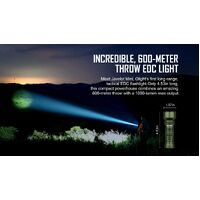 • Javelot mini is a long-range EDC flashlight. This powerful light achieves 600 metres of throw and delivers up to 1,000 lumens with its round beam, suitable for SAR, law enforcement, and camping.