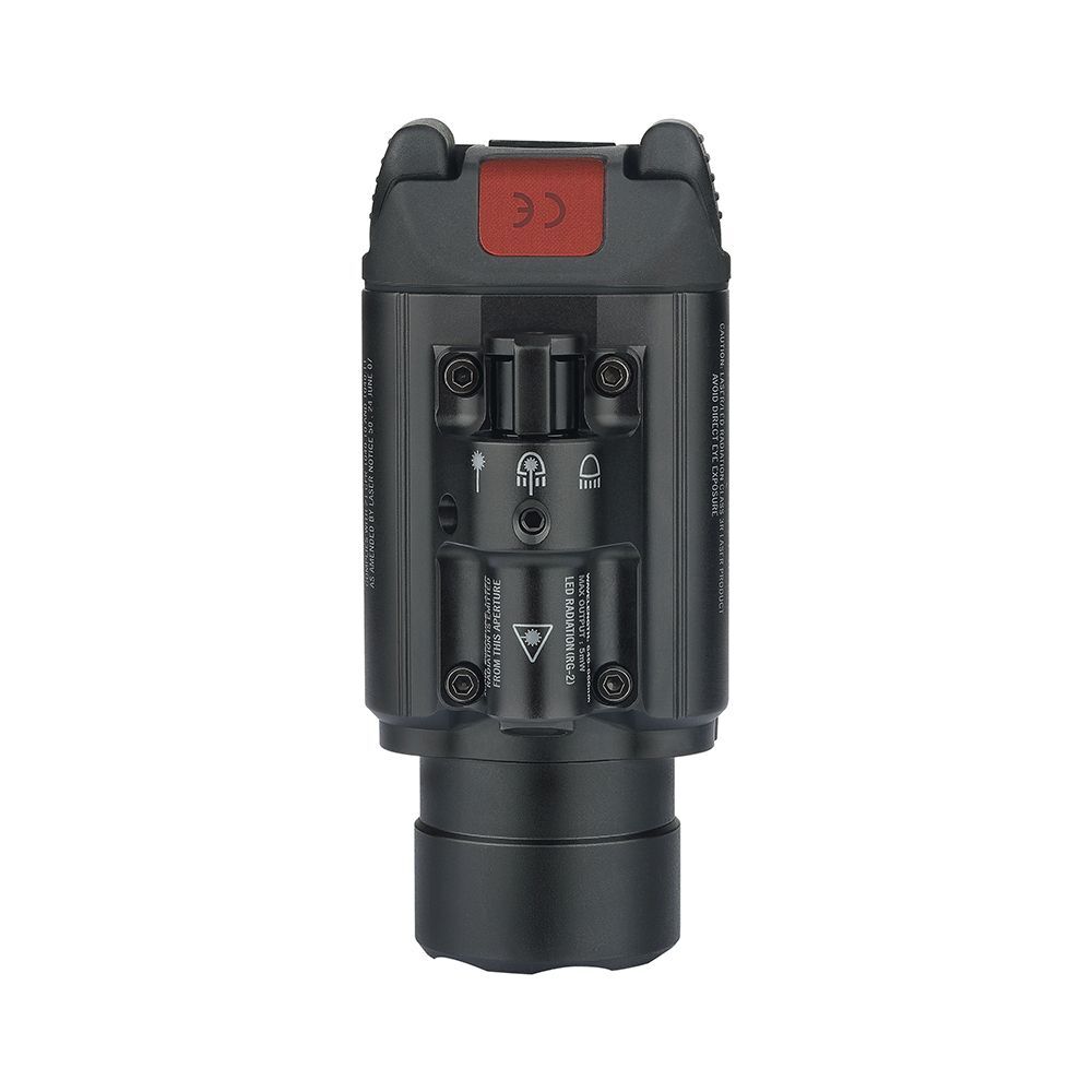 The BALDR RL is a professional lighting tool with red laser sight and white LED for installation on equipment with a Picatinny (MIL-STD-1913) or Glock rail. Powered by two CR123A batteries, the max output of the BALDR RL is 1,120 lumens. The neutral white LED and TIR lens makes for a robust search light. The center beam of the BALDR RL is intense and concentrated, also soft and wide when near the ground. The white LED can also be set to 300 lumens of constant lighting. The beam emitted by the red laser is clearly visible for accurate targeting. Equipped with adjustable screws, the light can withstand strong impacts and vibra- tions without loosening after calibration. It’s easy to install and detach the light by pressing or loosening the side swing arm. The main body of the product is made of aluminum alloy for extremely high strength and reliability. The BALDR RL is a high-quality budget choice for professional users with its excellent ease of use, high brightness and extremely powerful performance. Desert Tan version.