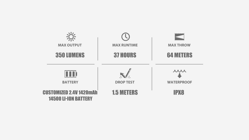 ✦High Performance: It delivers a max output of 350 lumens and a max throw of 64 meters