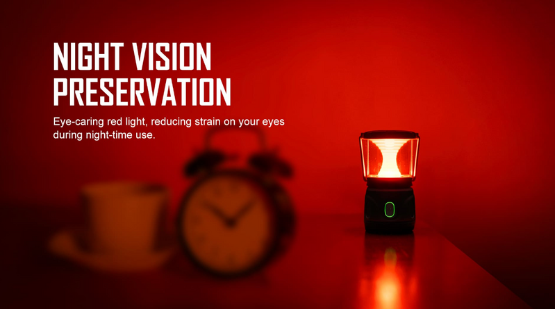 Outdoor friendly: 360°white and red lights, ideal illumination for both campsite and emergency. Runtime up to 48 hours with an integrated 3.7V 2000mAh rechargeable lithium-ion battery.